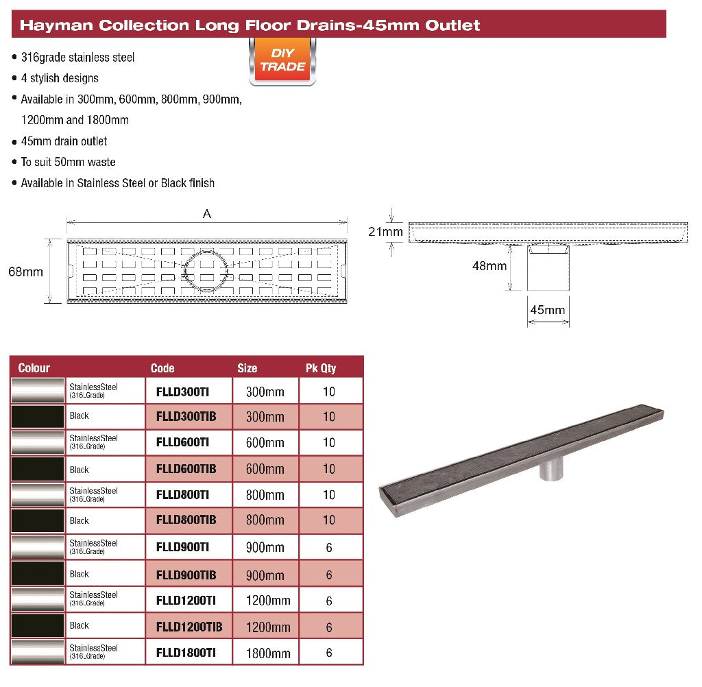 DTA FLOOR LONG DRAIN 800MM TILE-IN COVER S/STEEL