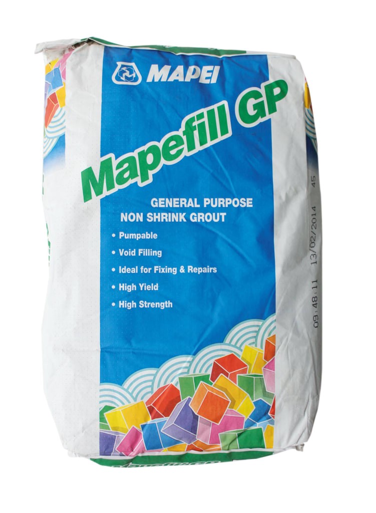 Mapefill GP is a preblended powdered grout based on high strength cement, graded aggregates with 1 mm diameter and special additives with an expansive agent formulated by the MAPEI research laboratories.