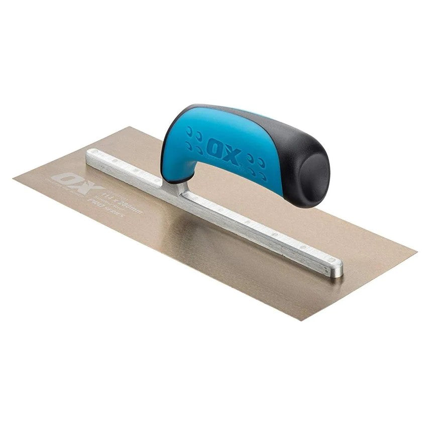 OX PRO GOLDEN STEEL FINISHING TROWEL - 114MM X 280MM