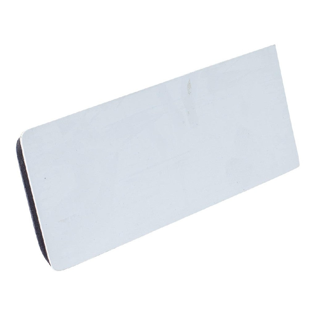 Plastic backer with foam cushion for even pressure.